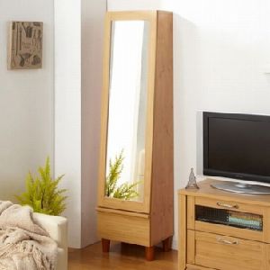 姿見と収納が一体になった機能的家具。木目が優しくお部屋になじみやすいデザイン。可動棚はしまうものに合わせて高さを変えられるので、効率良く収納可能です。
