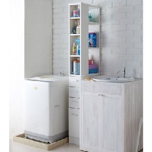 洗面台に置ききれなかった小物たちをすっきり収納できます。2種類の台輪付きなので、アジャスター付き台輪を取り付ければ、防水パンをまたいでの設置もできるうれしい仕様です。