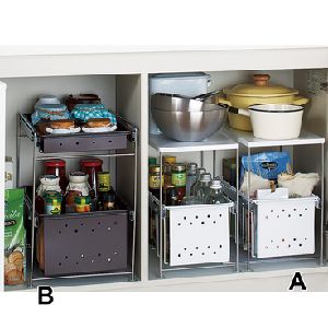 【スライドレールで取り出しラクちん】鍋や食材など、さまざまな種類のものをしまうシンク下収納は、きちんと分類することが大事。