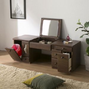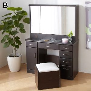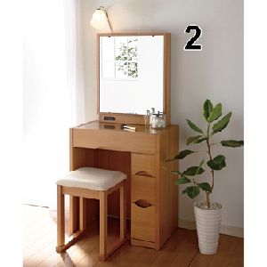フタを開くとドレッサー仕様になるデスクタイプと、便利な棚やライト付きタイプの天然木ドレッサー。