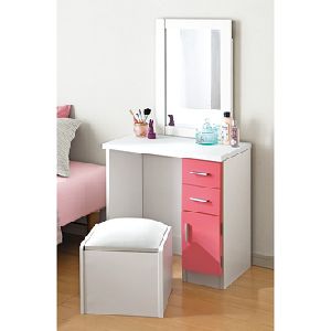 置き場所を選ばないコンパクトなドレッサーです。スツール内にも収納OK。カラーは、圧迫感のない白と、ガーリーなピンクから選べます。