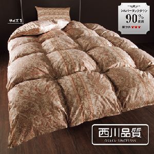 とても暖かい、フランス産ホワイトダックダウン90%の高級掛布団をお買得セットで。掛布団は立体キルトで羽毛が片寄りにくく、吸湿発散性に富んでいるから快適です。