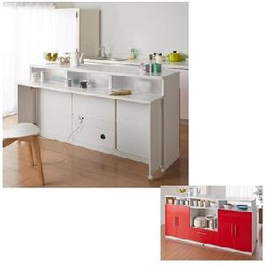 すき間に合せてサイズが選べます。上部には可動棚の付いたスリムな収納棚、下部には引き出し付き。シンク横に並べれば作業スペースが広がります。