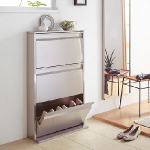 ヘアライン調ステンレス製薄型シューズラック 日本製