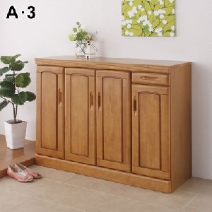 天然木ラバーウッドの無垢板を使用した、日本製のシューズボックス。無垢板ならではの彫り加工やアールを生かしたデザインが高級感を感じさせます。