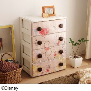 プーさんモチーフの天然木天板付きチェストです。おむつや衣類など子供の成長に合わせて使用できます。引き出しには開閉がスムーズなスライドレールを採用しています。