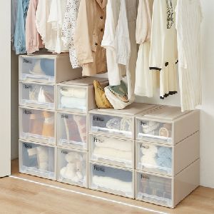 自分の好きな色が選べる、豊富なカラーバリエーションが揃った樹脂ケース。4個セットは引き出しを個別に動かせるので、衣替えにも便利です。