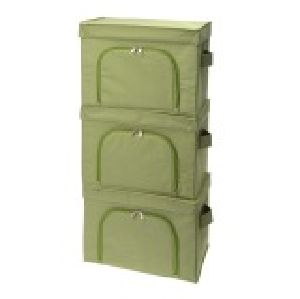 今までの収納のカタチにとらわれず、使いやすさを追求して生まれた収納ケースです。積み重ねて使え(積み重ねは3段まで)、前面が開閉式なので、前面を開いたままでも使える機能を持つ“新しい収納のカタチ”。