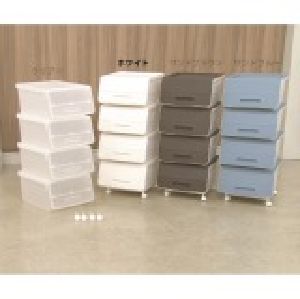 今までの収納のカタチにとらわれず、使いやすさを追求して生まれた収納ケースです。積み重ねて使え(積み重ねは4段まで)、前面が開閉式なので、前面を開いたままでも使える機能を持つ“新しい収納のカタチ”。