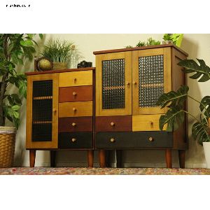 カラフル&木目がおしゃれな桐製キャビネット!嬉しい完成品お届け♪。ブラウンカラーをベースにしたカラフルな色合いのキャビネットです。