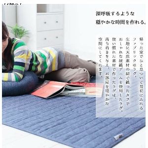 タフでおしゃれなキルトラグ。綿100%の綾織デニム生地を使用したタフでおしゃれなデニムラグ。表生地に天然素材である綿素材100%のデニム生地を使用したタフでおしゃれなキルトラグです。