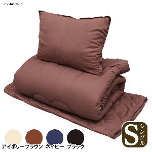 掛け布団・敷布団・枕・収納袋のお得な洗える布団セット。掛け布団・敷布団・枕・収納袋の4点がセットになった、お得な洗える布団セット。