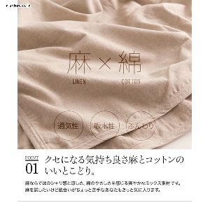 柔らかく自然の風合いに仕上げています。麻混素材・天然素材(コットン70% リネン30%)の組み合わせ。