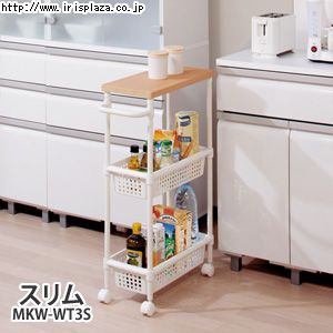 ウッドトップメタルポールワゴン MKW-WT3S幅22×奥行50.5×高さ77cm(キャスター込)