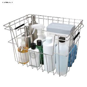 バスケットの取付け位置が変えられる隙間収納のワゴン。収納の高さに応じて、バスケットの取付け位置が変えられる隙間収納のワゴンです。