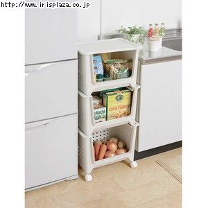 【生産終了の為特価!】キャスター付き 重ねて自由に使えます!キッチン収納やランドリー収納に便利♪。段数を自在に組合せて使えるバスケットです。