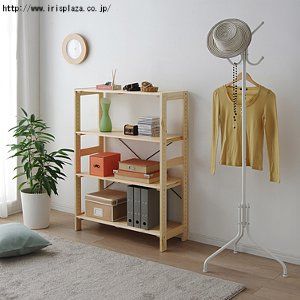 置く物に合わせて棚板の位置が調整可能なウッドラックです。。カラーは落ち着いた雰囲気のブラウンと自然な色合いのナチュラルの2色からお選びいただけます。