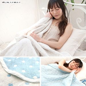 麻混5重ガーゼケット ドット柄 【シングル】