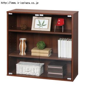 ガラスキャビネット ウォールナットブラウン MOJ-75GR幅75×奥行29.1×高さ75cm
