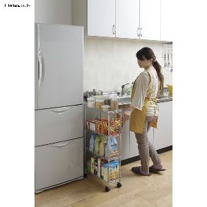 隙間を活用できるスリムタイプ!キャスター付きです。冷蔵庫とシンクの間、コンロと壁の間などにできる隙間を上手に活用することのできるメタルスリムです。