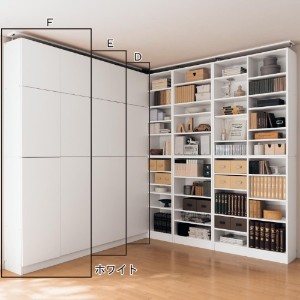 収納量や用途、スペースに合わせて壁面を有効活用。扉付きの奥行30cmで取っ手の出っ張りがなく、天井近くまで使えるつっぱり式だから、造り付け家具のようにすっきり見えます。