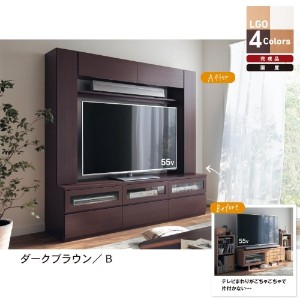 大型テレビの圧迫感を軽減する、ロータイプ&奥行浅めのテレビ台。木目調のボディとカラーガラスの仕切り板で、モダンな雰囲気に仕上げています。