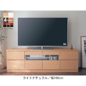 ナチュラルな木目調デザインのテレビ台。DVDなどのソフト類を収納できる引出しや、サイドには可動棚付きの扉収納も。