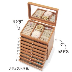 デスクやドレッサー上に置ける、大容量のジュエリーボックス。右サイドのクリア部にはネックレスホルダー、引出しにはピアスホルダーやリングホルダーが付いていて、最下段を開くとオルゴールが流れる仕組みです!