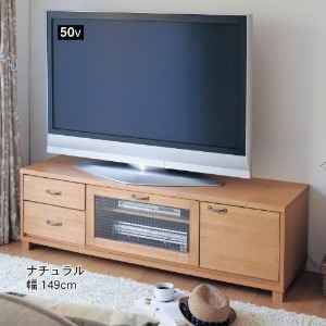 ナチュラルな木目調デザインのテレビ台。DVDなどのソフト類を収納できる引出しや、サイドには可動棚付きの扉収納も。