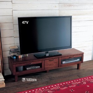 ぬくもりを感じるリアルな木目調素材とアイアン調の取っ手がアクセントになった、レトロなテレビ台です。デッキ収納部に加え、ソフト類をホコリから守る扉収納、小物類をスッキリ収納できる引出し付き。