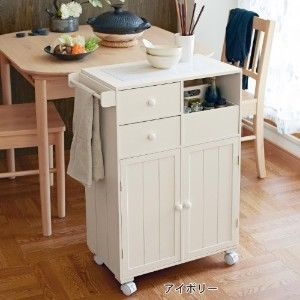 キッチンのデッドスペースを有効に使える隙間ワゴン。ナチュラルな木の風合いが優しい雰囲気です。天板はタイル貼りで作業台としても重宝、すのこ状の棚板は高さを調節することができるので背の高いボトルなども収納…