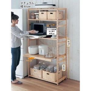 幅10〜25cmのすき間が、便利に活用できて見た目すっきり。ラックの幅ぎりぎりまで使える左右オープンタイプで出し入れもラク。