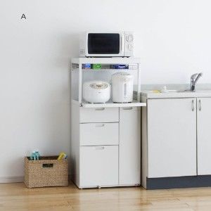 スチール素材に白の塗装をほどこした、清潔感漂うキッチン収納ラック。棚の裏面は補強してあるのでしっかり丈夫な作り。
