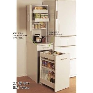 洗濯機や冷蔵庫横サイドの中途半端な隙間を収納スペースとして活用!洗剤や食品ストックなどをたっぷり収納できる隙間ストッカーです。