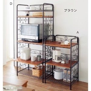 大型レンジやトースター、炊飯器などキッチンに必要な調理家電を使いやすくまとめて収納できます。木製棚板は傷つきにくいメラミン化粧素材。