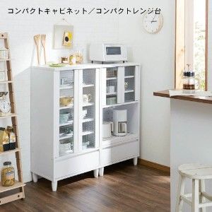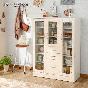 清潔感あふれるホワイトカラーをベースに、部分的にあしらったチェック柄がキュートさを演出♪コンパクトなサイズ感でひとり暮らしの方へオススメの食器棚です。