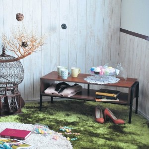クラシカルな雰囲気のアイアンフレームとぬくもりのある木製棚板のコンビ。並べても圧迫感のないオープンデザインで、テレビまわりをすっきり愛らしい印象に。