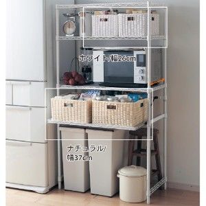 レンジ台の収納に便利なラタンのバスケット。内布付きで乾物やストック食品などの収納におすすめです。