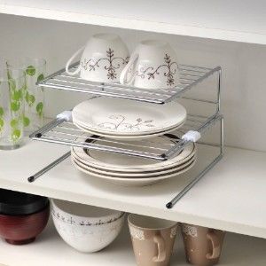 置くだけで、食器類を2段に収納できるディッシュラック。収納力がアップするだけでなく、食器の取り出しや、片付けも簡単になるのがうれしいところ。