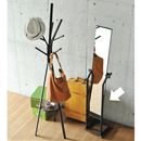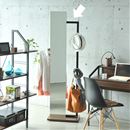 裏側にハンガーバーと棚が付いていて、服を引っ掛けたり小物を置いたりできる便利なスタンドミラー。全身チェックもバッチリです。