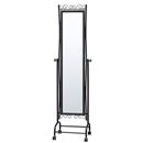 ブラックカラーと蔦をモチーフにしたスチール製の枠が特徴のキャスターミラーです。シックでモダンにお部屋を演出。