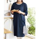 頭からすっぽりかぶれるワンピース丈のエプロン。家事に便利な工夫がいっぱいで、汚れを気にせず家事に専念できる1枚です。