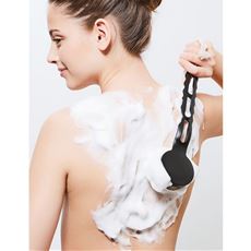 細くソフトな網目状繊維と、ハード繊維をダブルで使用。柄は伸縮式で、天井や壁のお掃除もラク♪