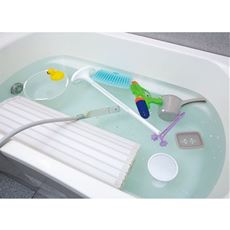 手の届かない風呂釜汚れを洗浄!風呂フタ、湯おけなどの浴室小物のこびりついた汚れも一緒に浸け置き洗浄できます。