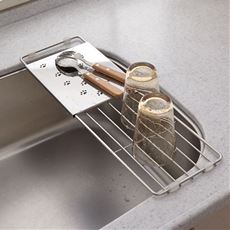 キッチンのシンクのコーナーに設置して、コップやグラスなどの食器を水切り。シンク内のスペースを有効活用できます。