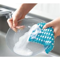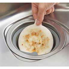 排水口に置くだけ。ゴミや油を取って排水管の汚れやヌメリをガード。中央付近に切り込みを入れて、水の通りを良くしました。