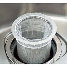 伸縮性のあるストッキング素材で様々な排水口のゴミ受けや三角コーナーに対応可能。編み目が細かいから小さいゴミもしっかりキャッチでき、水切れも良いです。