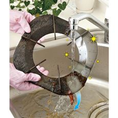 特殊ジェルがコゲ・油汚れを浮かして落とす新感覚のクリーナー。汚れた五徳も、塗って、放置して、水で洗い流すだけでピカピカに。