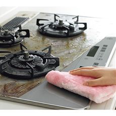 毛足が長くハリのあるレーヨンが汚れをしっかりと吸着するので、洗剤なしでも水で濡らして拭くだけで汚れをそぎ落とします。