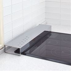 ガスコンロの五徳周りの天板の汚れ、コゲつきを防ぐマット。このシートを敷いておけば、汚れても取り外してササッと水洗いすればOK。